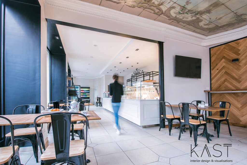 L’aménagement de l’étage a été pensé pour créer un lieu chaleureux et convivial, accueillant la clientèle. Nous avons procédé à l’ouverture des espaces pour maximiser la luminosité et la fluidité. La modernisation complète du lieu inclut des finitions de haute qualité, un agencement optimisé et la création de plus de 30 places assises, offrant ainsi un véritable salon de thé-boulangerie où il fait bon se retrouver.