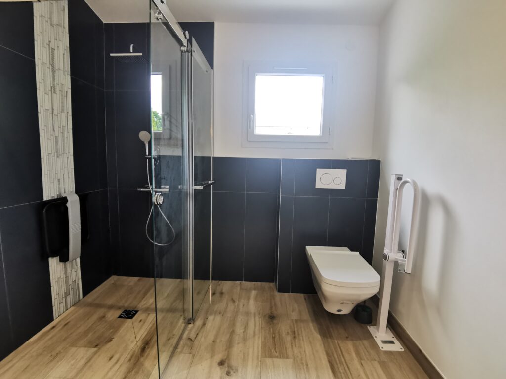 Ce projet a consisté en la réalisation d’une extension horizontale attenante, conçue spécifiquement pour répondre aux besoins d’accessibilité et de confort. Nous avons créé une chambre PMR spacieuse, lumineuse et facile d’accès, garantissant une autonomie maximale. Attenante à cette chambre, une salle de bain PMR complète a été aménagée selon les normes d’accessibilité, incluant une douche de plain-pied, des barres d’appui ergonomiques et un espace de manœuvre optimisé.